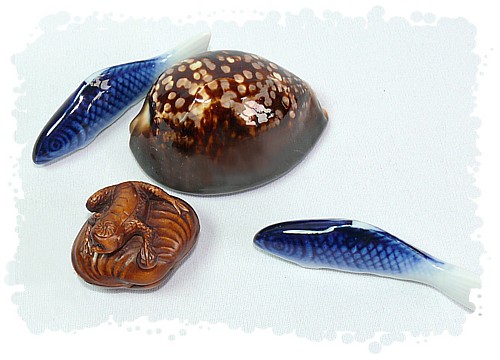 на ракушке - жемчужнице, японская старинная нэцкэ из кипариса,