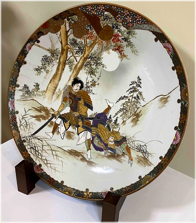 P-062 Антикварное большое интерьерное блюдо с авторской росписью на самурайскую тему