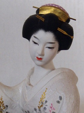 статуэтка Хаката, 1950-е гг. Изящная японская статуэтка изображает молодую женщину в светлом кимоно, расписанном тонко летними цветами и травами, и черном с яркими листьями поясе оби, которая держит в руках маленькую плетеную клетку для цикады. Обычно в июле-августе цикаду в клетке приносят в дом, чтобы слушать сверчание цикад и сверчков - звуки вершины жаркого лета. Редкая по теме авторская работа 1950-х гг. Высота статуэтки : 27 см Материал: керамика-бисквит, роспись, золочение. Продано Мастерские Хаката - уникальное производство керамических статуэток и фигур на японском острове Кюсю, широко известное в мире со времени Всемирной Парижской выставки 1900 года. Все фигуры изготавливаются и расписываются мастерами вручную, и существуют в очень ограниченном числе экземпляров. Японские статуэтки изящный и оригинальный подарок и отличное украшение интерьера в японском стиле. |