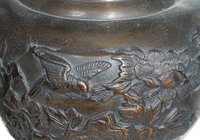 А-242 японская антикварная бронзовая курильница с рельефами и фигурами, 1800-е гг., эпоха Эдо
