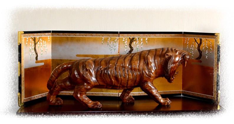 Тигр, японская большая интерьерная скульптура из дерева, 1920-30-е гг. Большая японская антикварная интерьерная скульптура из дерева в виде грациозного и опасного хищника. Тигр является японским символом мужества и храбрости. Эксклюзивное украшение интерьера и прекрасный и дорогой подарок ценителю японского искусства Дерево ( японский белый дуб), резьба, тонировка, японский лак. Высота: 38 см Длина: 92 см Вес: 10 кг Цена: $ 2 450 |