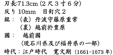 Катана Fujiwara Shigetsune, Начало эпохи Эдо, XVII век. Эпоха Эдо, Камбун эра (1660-е гг). Монтировка меча стиля Учигатана. Катана периода кото. Школа Фудзивара. Мастер Фудзивара Шигецуна (первое поколение, основатель школы). Фудзивара стал работать в княжестве Эчизэн (Echizen), известным по знаменитым князьям Мацудайра, в столице княжества находилось множество самураев, привлекаемых службой у влиятельного и могущественного клана Мацудайра. Японский меч - катана - форма клинка shinogi-zukuri, киссаки среднего размера chu-kissaki, поверхность клинка Shinogi-ji имеет рисунок itame-hada, с комбинацией chikei, линия рисунка хамона чистая, хамон типа nie-deki, gunome-midare с вертикальными интервалами, хорошо sunagashi, частично просматриваются ashi. Очень характерная сая клинка - тонкая резьба под лаком. Фучигашира в стиле тати.