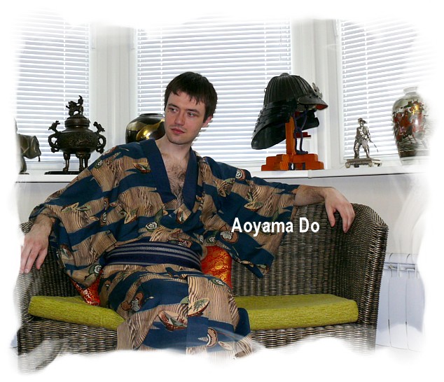 Антикварное мужское кимоно из смесовой ткани (шелк и шерсть) без подкладки с рисунком в виде копья, большой расписной круговой чаши для сакэ и тыквы горлянки (использовалась как сосуд для жидкостей в походных условиях). ![]() Японские старинные кимоно можно использовать как эксклюзивный предмет одежды в японском стиле, и как элемент интерьерного декора помещения.