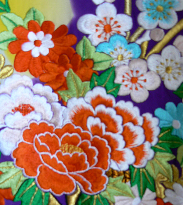 W-023 японское шелковое кимонo фурисодэ с вышивкой и росписью, 1970-е гг.